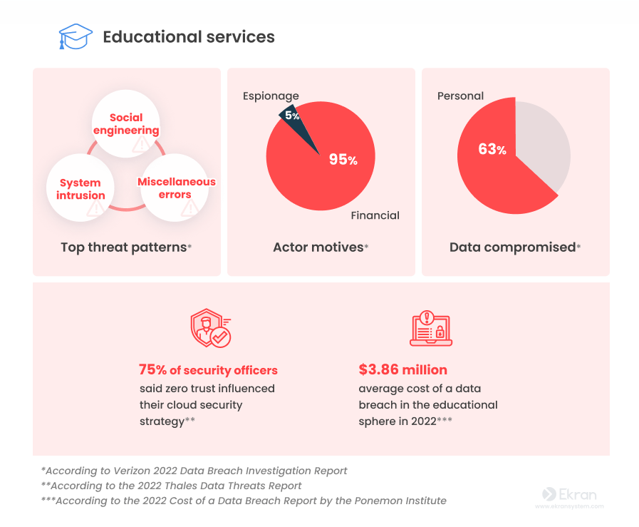 COVID-19 大流行引发了混合教育和在线教育的兴起。许多以前不在线工作的教育机构必须适应新的现实:云中的数据存储和使用、在线文档和支付以及数字数据源。然而,与物理存储时代相比,这些机构现在更有可能遭受数据泄露或破坏。