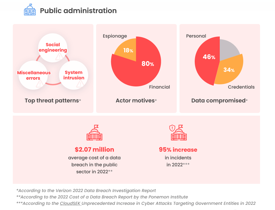 公共管理是受网络攻击影响最严重的行业之一。政府数据通常最终会出于经济利益或间谍活动的目的而被盗。恶意行为者可以攻击政府数据库以获取战略信息。